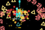 GalaXeネオンの光っぽい宇宙空間でエネミーと戦う縦スクロールシューティング。
